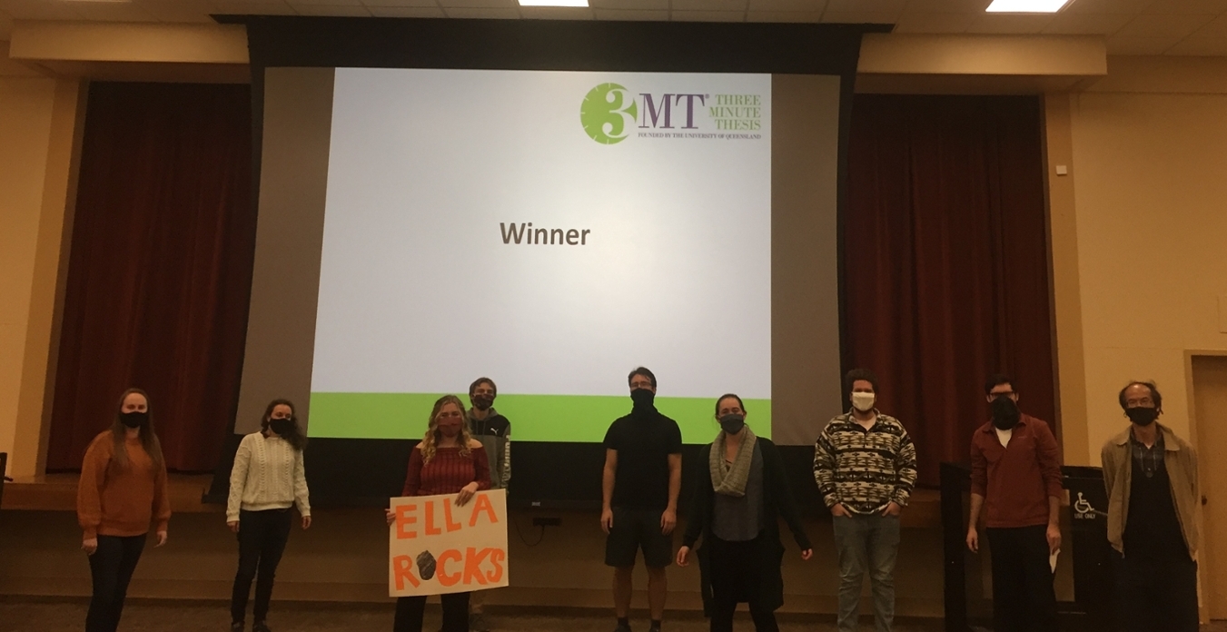 Eleanore (Ella) Larson began her Three Minute Thesis (3MT®) asking the audience, “I’d like you to picture this” on November 19 in Foy Hall. She never pictured that she would both be the competition runner-up and the people’s choice winner.