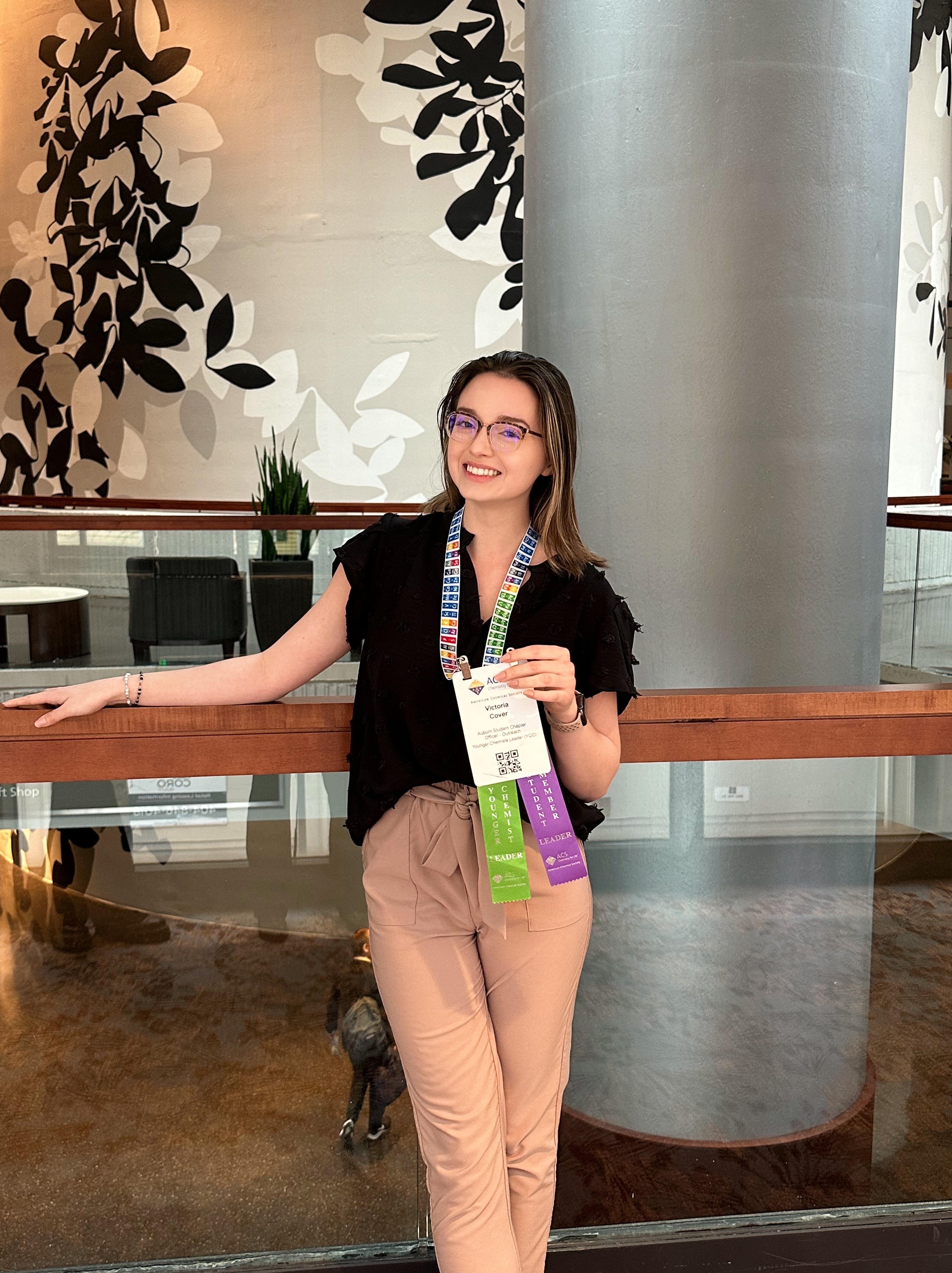 Additionally, Cover works in the lab of Paul Ohno, assistant professor in the Department of Chemistry and Biochemistry, who encouraged her to apply for this conference. "From day one, Victoria has been an excellent addition to our team,” Ohno said. “I’m happy to see her leadership be recognized by this award and I look forward to seeing all that she will accomplish in the future.”